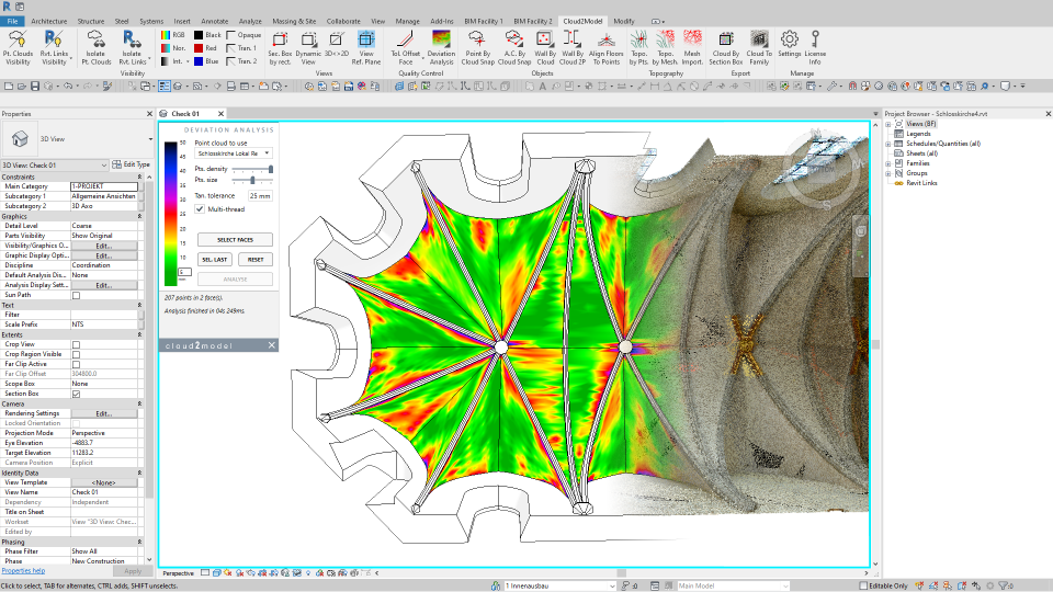 cloud2model® is the extension for Autodesk Revit for precise and efficient modelling and review of point cloud based BIM. It radically improves the productivity with a large set of smart tools that greatly supports scan to BIM workflows. From visualization and navigation helpers, to automatic creation of BIM objects and detailed analysis of the accuracy of the model.