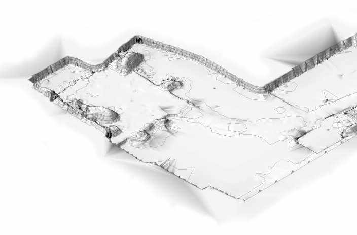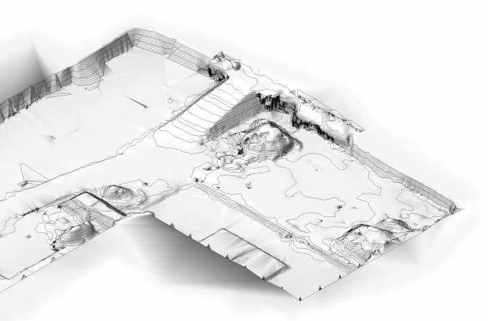 Für die Planung und Baustellenkontrolle wurde die gesamte Baugrube mit 3D-Laserscanning im Detail erfasst. Die Datenerfassung dauerte einen halben Tag. Durch interne Forschung und Entwicklung war es möglich, aus der Punktwolke ein REVIT-Geländemodell zu erstellen.