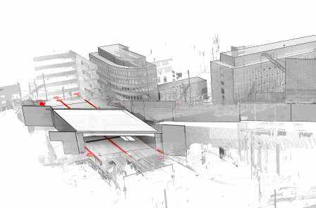 Für die Planung der Baustelleneinrichtung wurde aus den 3D-Laserscanaufnahmen ein REVIT-Modell erstellt. Die gelieferten Daten werden nun mit dem Planungsmodell ergänzt und daraus eine 4D-Simulation generiert. Dabei können verschiedene Varianten der Baustelleneinrichtung und Versorgung getestet werden. Durch die Möglichkeit dieser Art der digitalen Planung können Engpässe bereits frühzeitig erkannt und allfällige Massnahmen ergriffen werden.