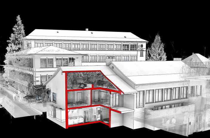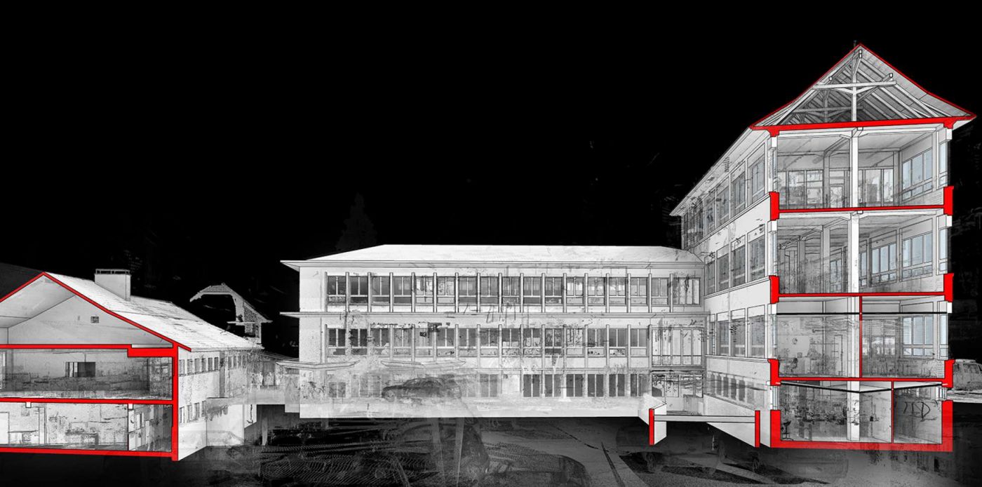 Das Areal Comadur in Thun wurde im Dezember 2016 von der Schweizerischen Pensionskasse des Anwaltsverbandes erworben. Die Steiner AG wurde beauftragt das Areal zu entwickeln und zu bebauen. Für die Erfassung des Gebäudebestandes und zur Schaffung der notwendigen Plangrundlagen wurde das Areal mittels 3D-Laserscan vermessen und ein Liegenschafts-Informationsmodell (LIM), welches den Ist-Zustand des Gebäudes darstellt, in 3D modelliert. Dieses diente im ersten Schritt als Grundlage für die Zwischennutzung der Geschossflächen, im zweiten Schritt für die planerische Weiterbearbeitung des Areals. Für die 3D-Modellierung wurde REVIT eingesetzt. Auf Wunsch des Kunden wurden zusätzlich 2D-Pläne aus dem LIM-Modell erstellt und abgegeben.
