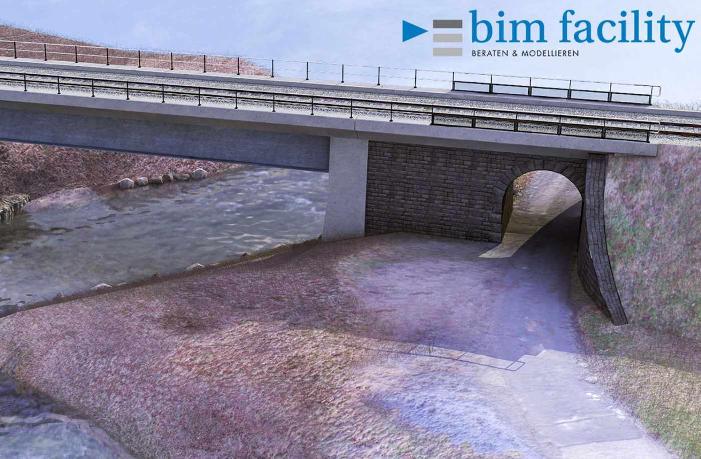 BIM Facility AG hat die bestehende Brücke aufgenommen und die neue Brücke mit den Plänen der Planer modelliert und visualisiert. Das 3D Modell wurde verwendet um Anschlüsse zu kontrollieren und Variantenvergleiche durchführen zu können.