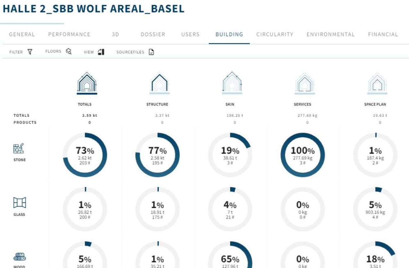 Auswertung per Klick von Materialien auf Objektebene für Abbruch, Recycling und Wiederverwendung
